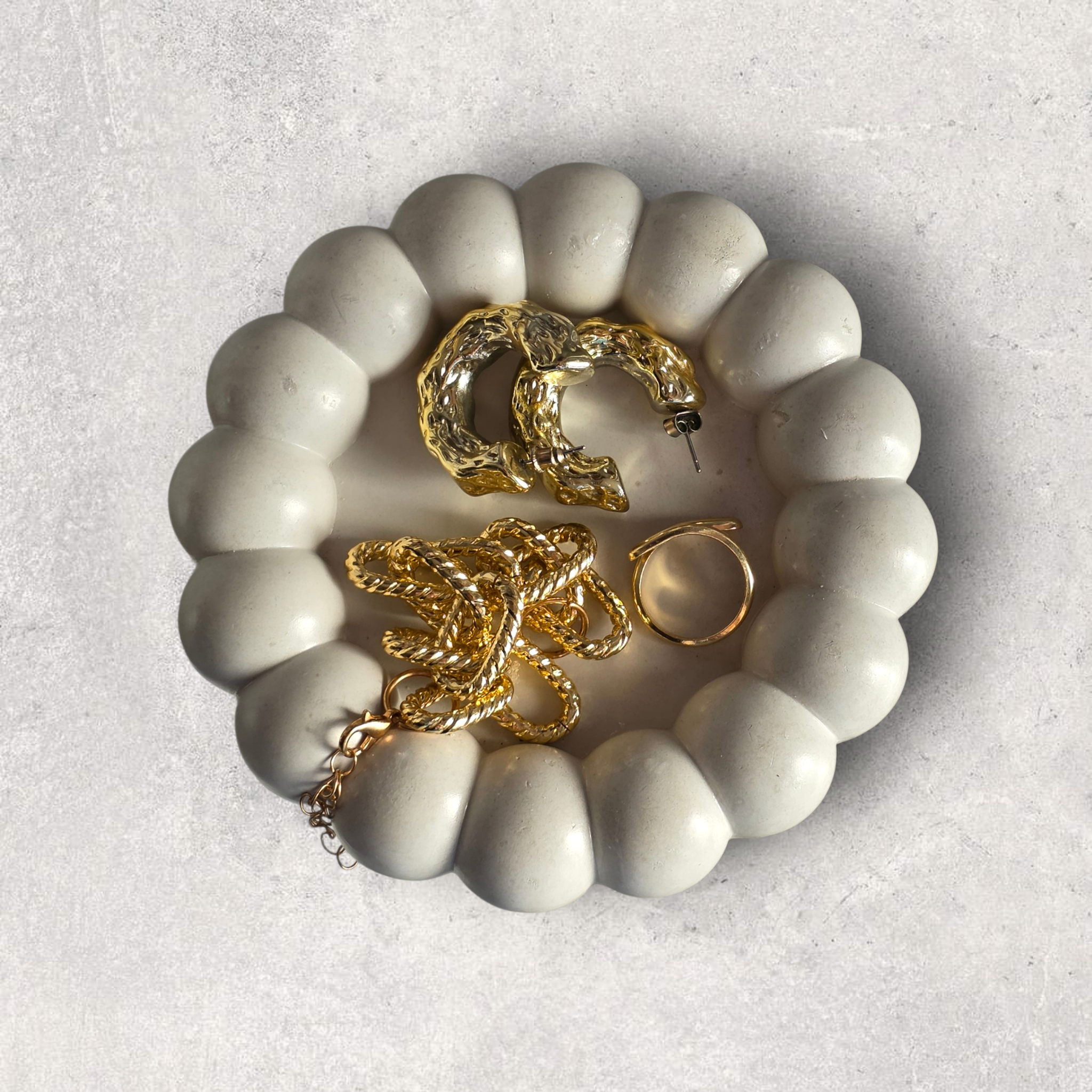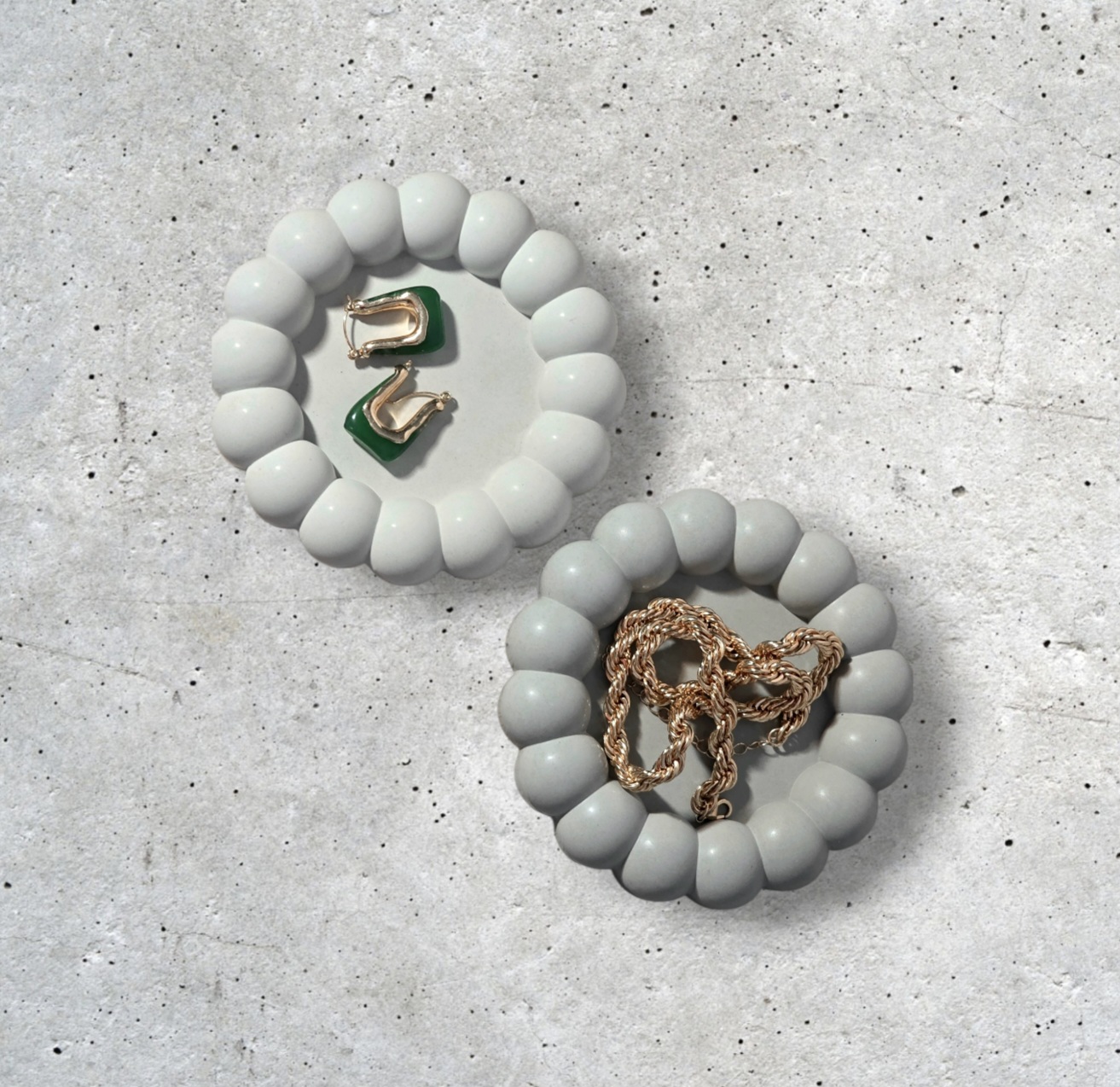 Bring a modern, sculptural touch to your space with this handmade bubble concrete tray, designed for both beauty and function. Featuring a soft bubble silhouette and a smooth satin-sealed finish, this tray is perfect for organizing small essentials while elevating your decor.