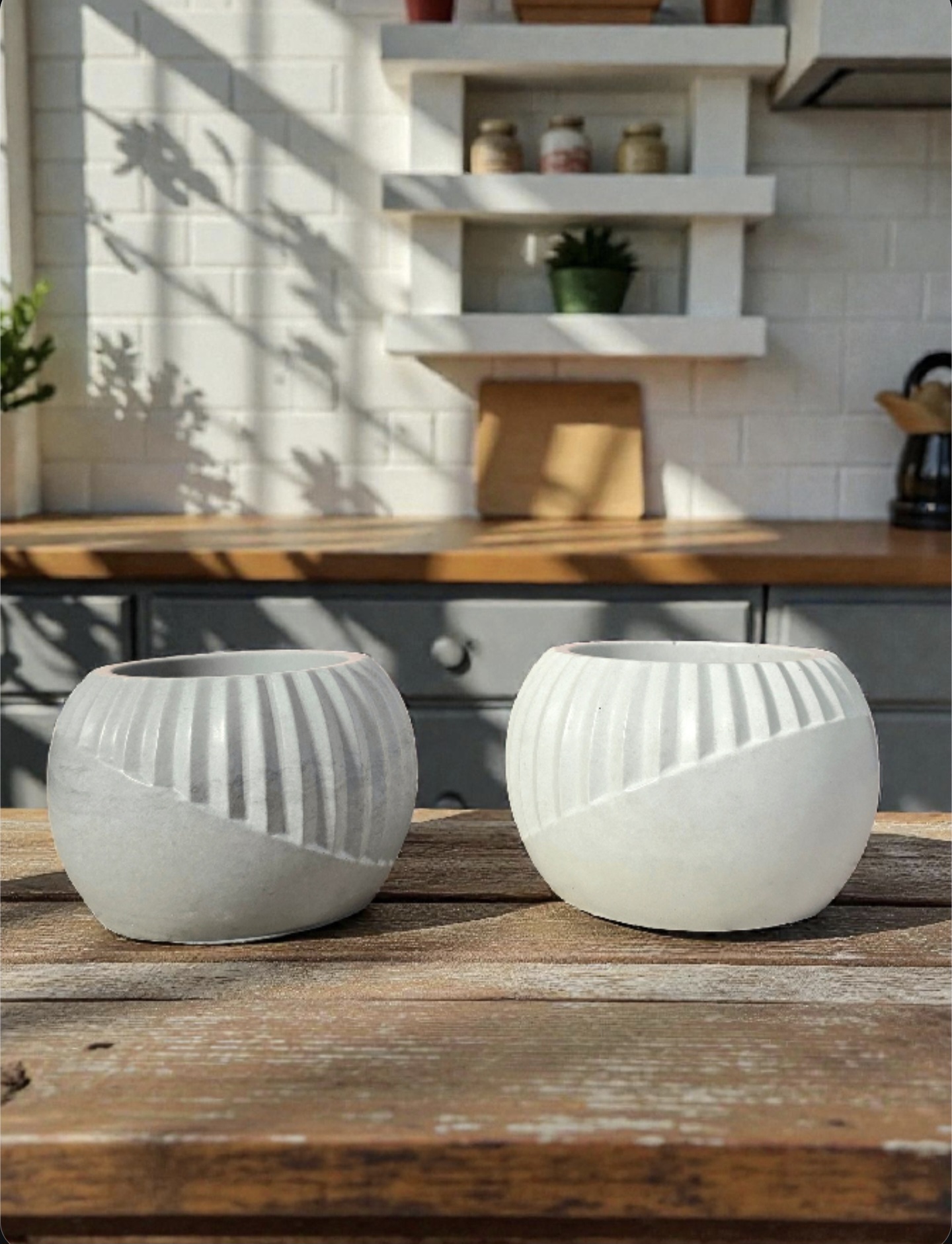 Each bowl is hand-poured using cement, carefully sanded, and sealed to protect the surface while maintaining the natural beauty of cement. Made in small batches, no two pieces are exactly alike — subtle variations are part of the charm of handmade decor.