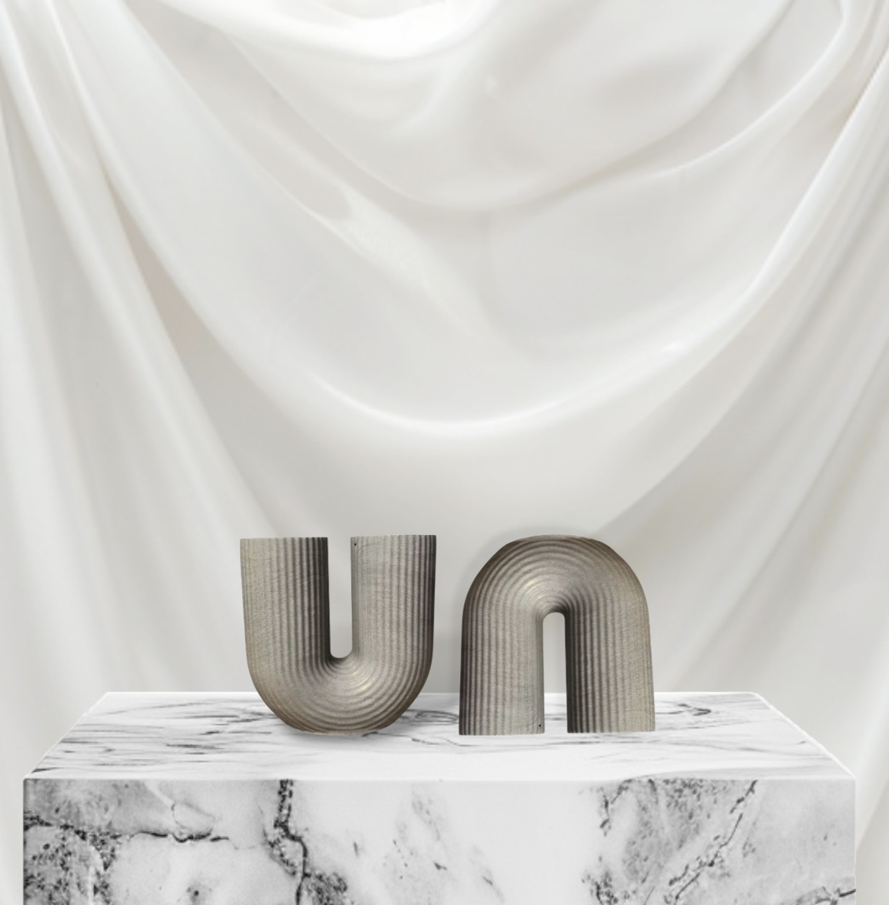 Add a sculptural touch to your space with this handmade ribbed concrete U-shaped decor piece, designed to elevate shelves, coffee tables, and styled surfaces with modern minimalism.